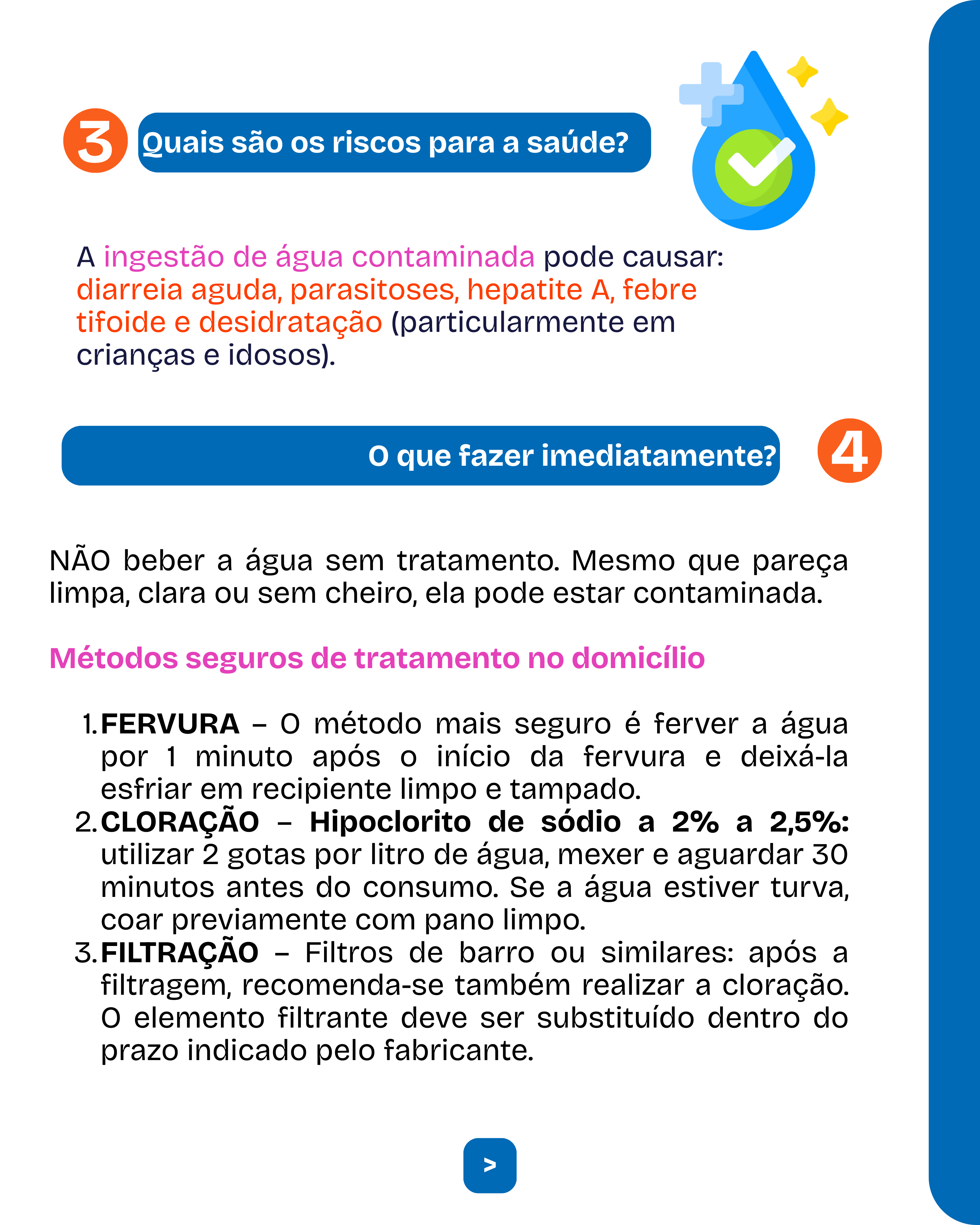 A população é convidada a acompanhar as informações e a adotar práticas seguras no armazenamento, captação e manuseio da água.