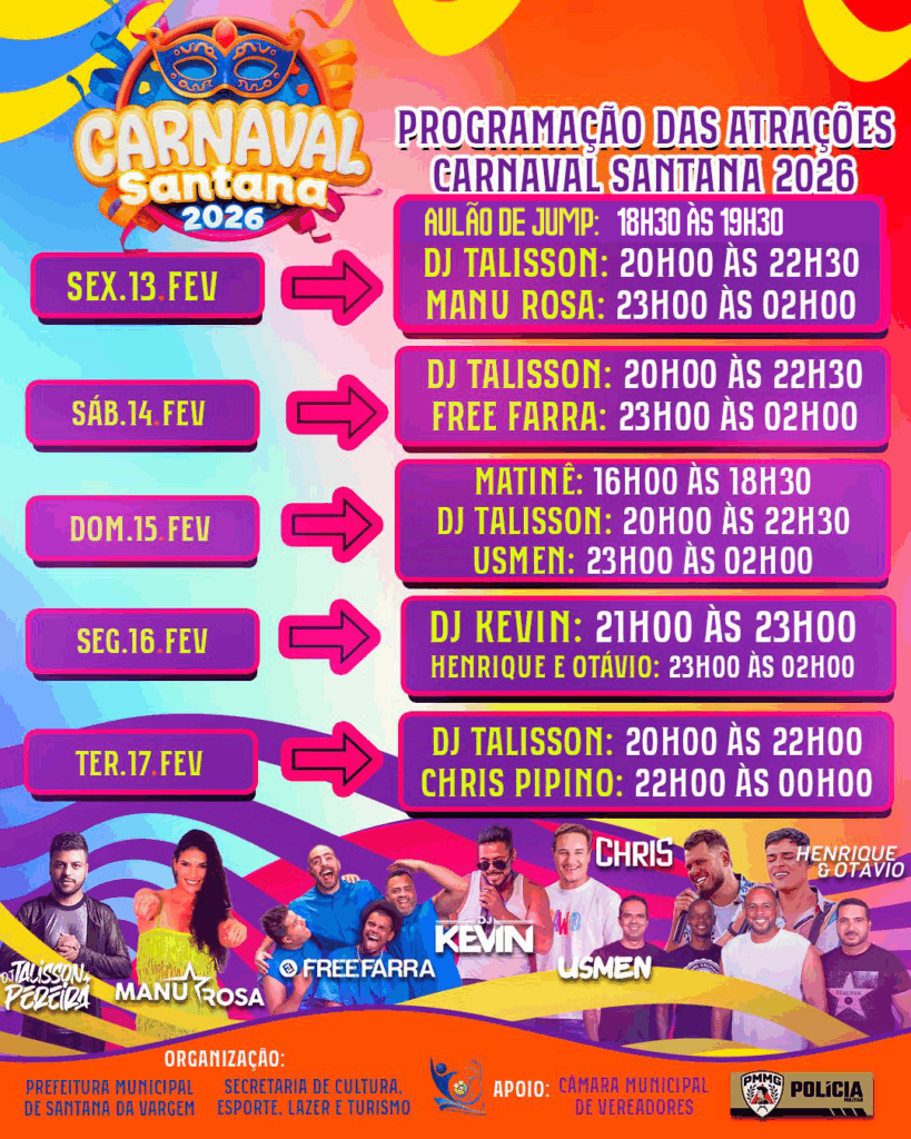 Agora o Carnaval Santana 2026 começa com um esquenta especial: tem aulão de Jump abrindo oficialmente a festa pra colocar todo mundo no clima!